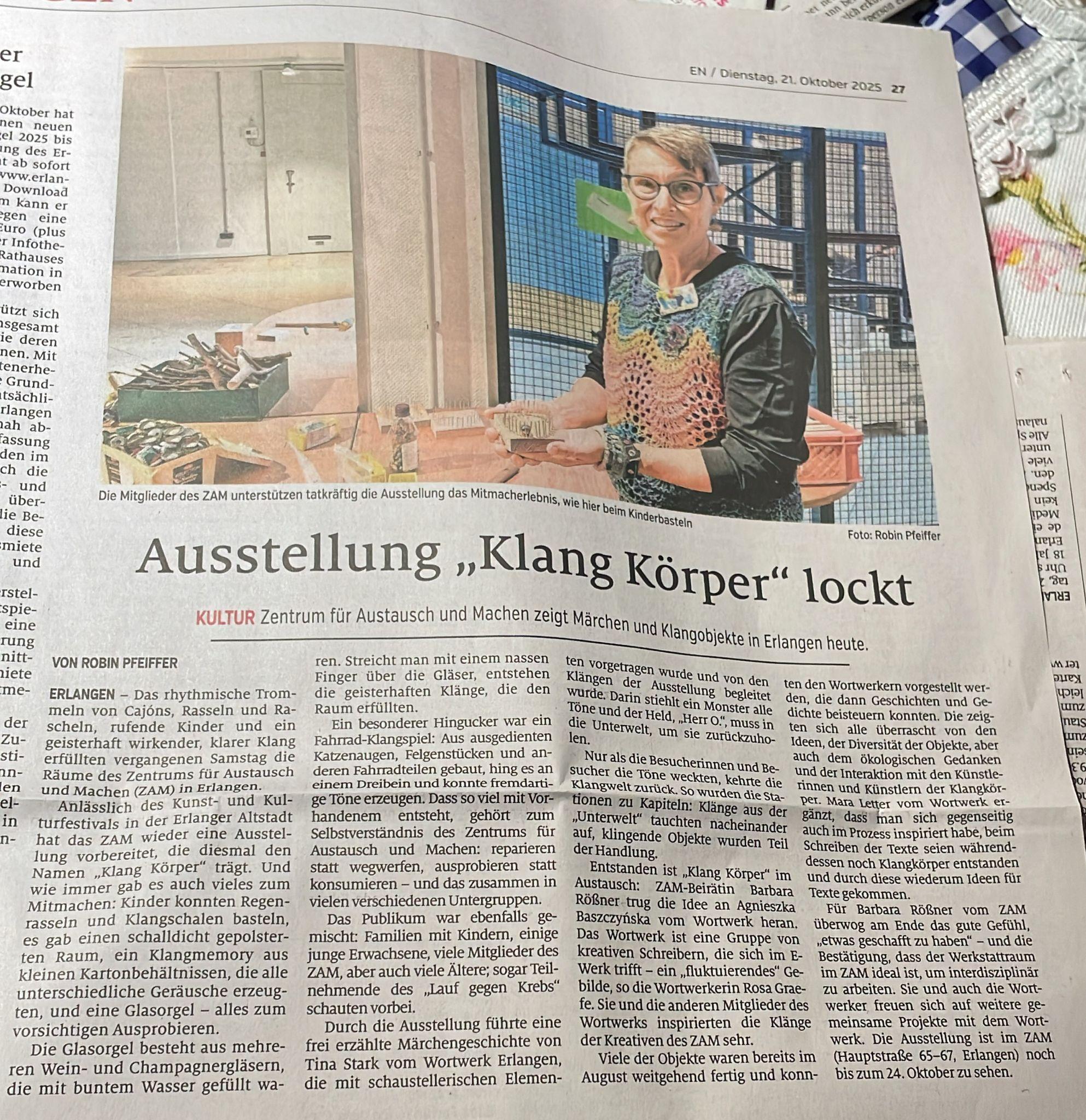 Zum Festival 'Freibordsteinkante' am 11.12. spielen Wortwerk Erlangen, ER_ror und ZAM:kreativ mit der Verbindung von Farben, Worten und Klängen: szenischen Führungen, Instrumentenbau für große und kleine Kinder, akustischen Raumerkundungen und Trommelworkshop |