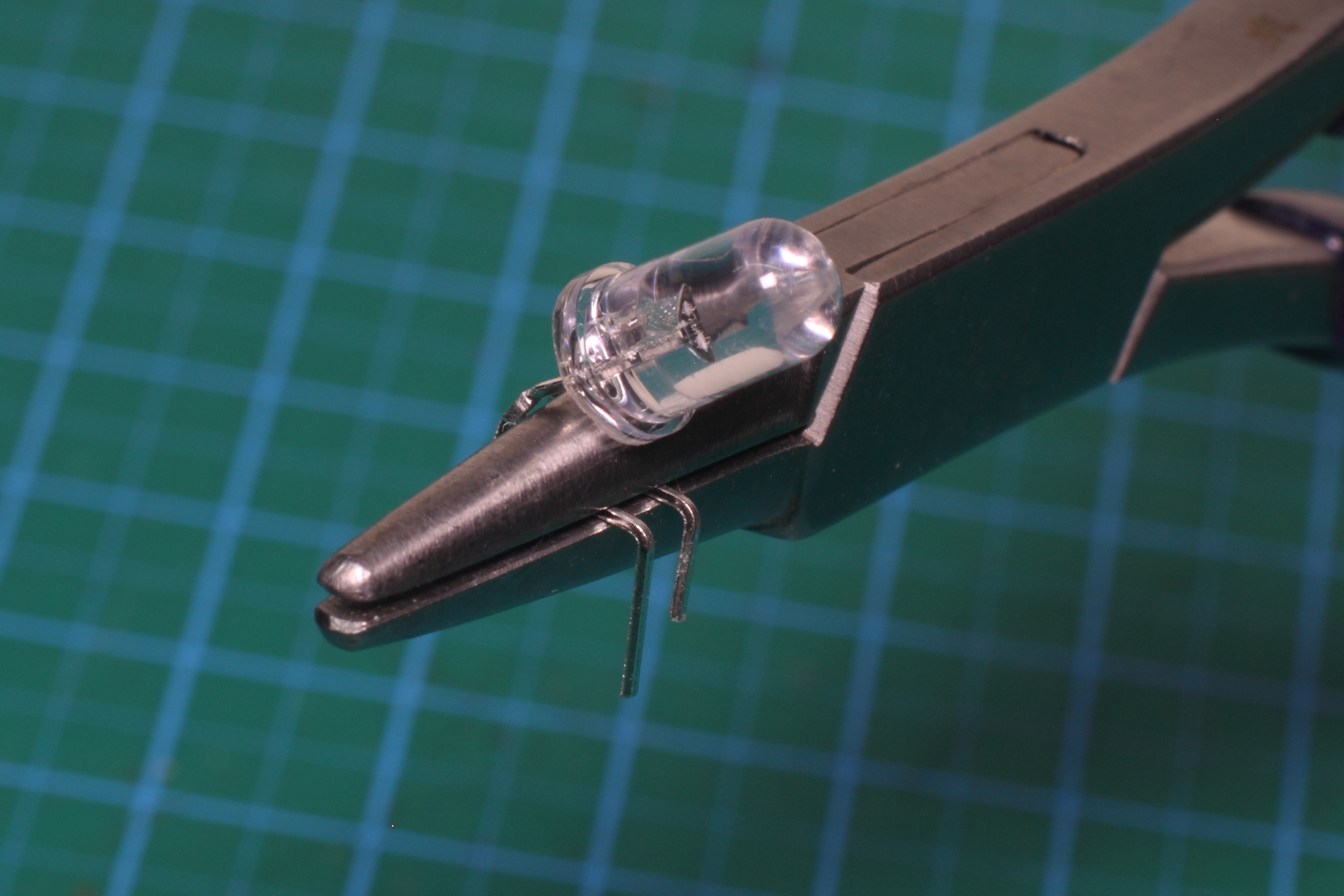 Die Anschlussdrähte (Leads) der LEDs müssen vor dem Einsetzen in die richtige Form gebogen werden, damit sie sauber in die vorgesehenen Bohrungen passen.